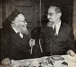 הרב אונטרמן והרב סולוביצ'יק משוחחים בדברי תורה.